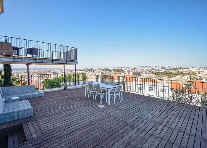 Lisbon Panorama III公寓在圣维森特区内靠近恩宠观景台,提供日光浴 和阳光露台. 度假屋还设有厨房,配备冷冻机 和炉子.